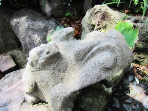 伊豆旅行で出会った据物ガエルたち 伊豆高原駅北口にある美足の湯を見守りガエル カエルブログランキング